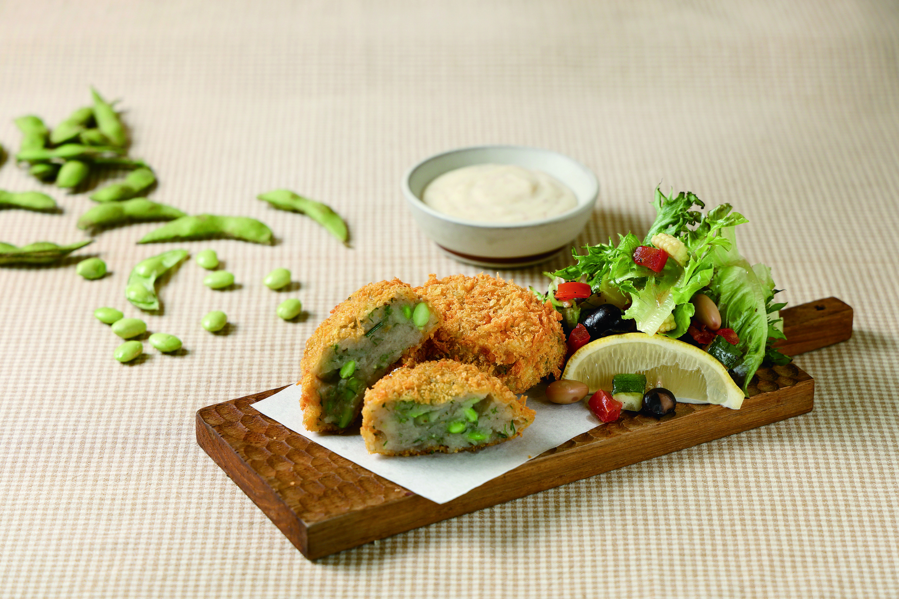 毛豆可樂餅佐豆乳檸檬美乃滋