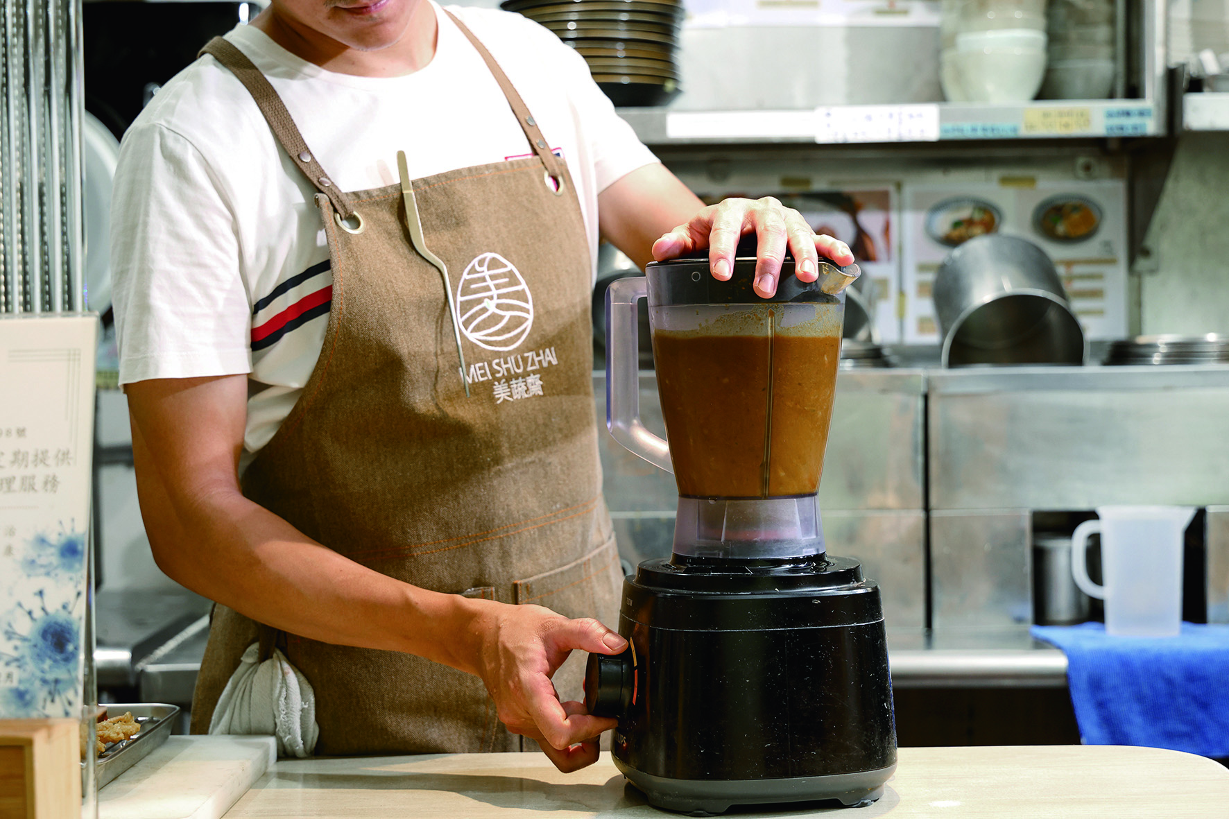 兩者放入調理機中打泥,兌高湯調整濃度與鹹度,倒入鍋中與椰漿煮滾為湯底。
