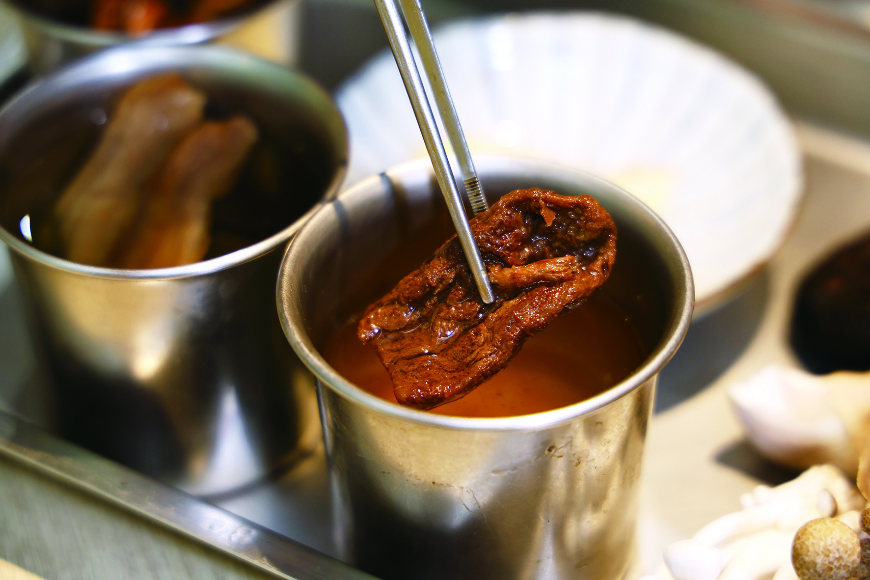 產自美濃的白玉蘿蔔,以及美濃區農會出品的蘿蔔乾與陳年老菜脯,三種不同時態下的蘿蔔滋味,堆疊出具有層次的湯頭,入喉鮮味爆發。