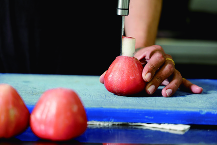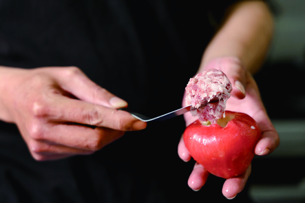 使用去核刀把蓮霧挖空,並稍微修飾底部,做成盅。