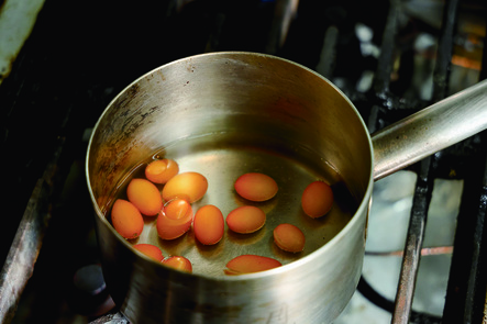 起鍋滾水稍微汆燙,放入冷水去皮,瀝乾備用。