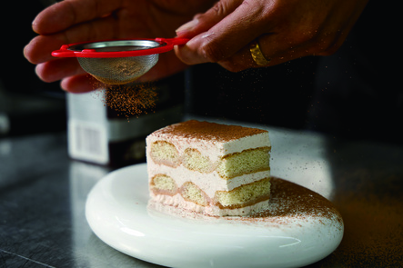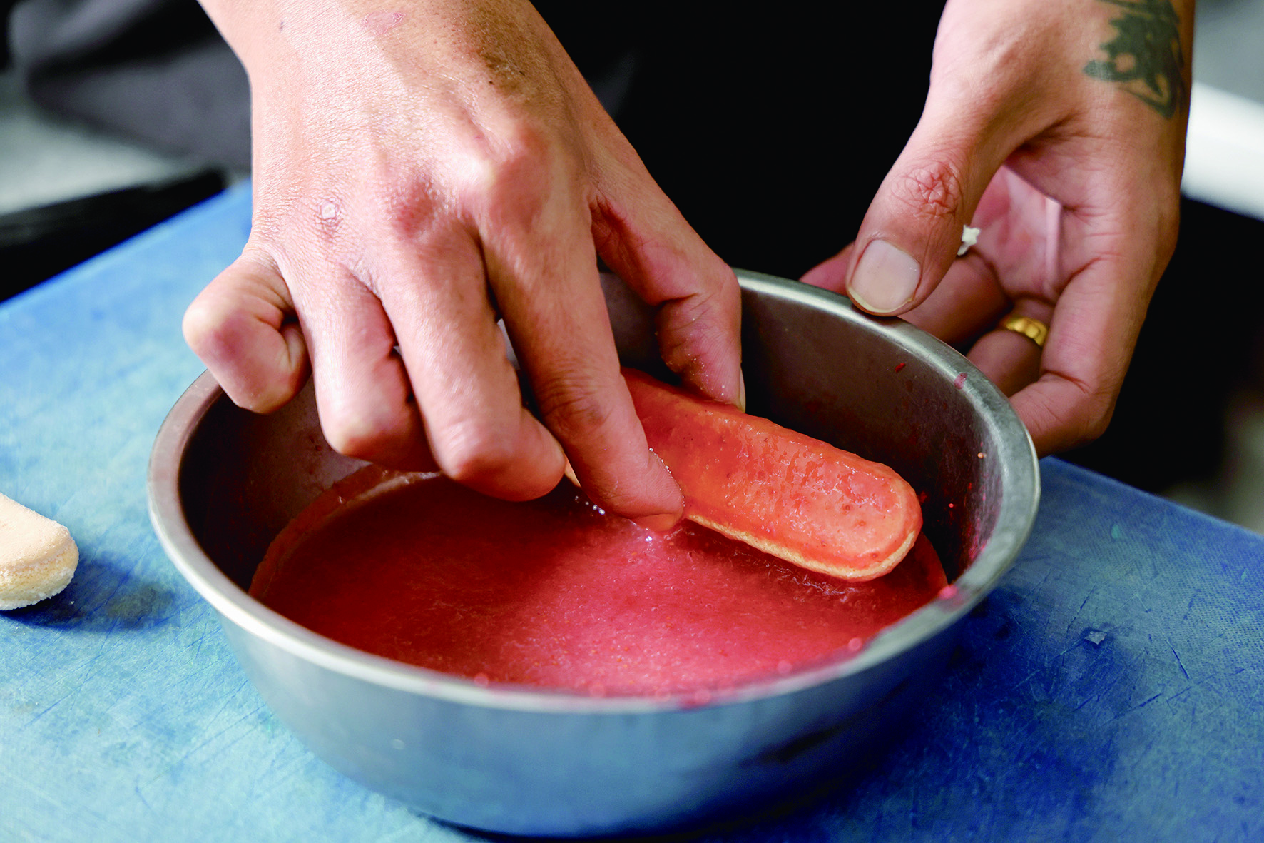 經典義大利甜點改以大樹草莓來演繹,手指餅乾浸草莓汁,並用自製草莓白蘭地取代咖啡酒,改良傳統使用生蛋的配方,使用馬斯卡彭操作更簡單,無工具也能輕鬆完成。