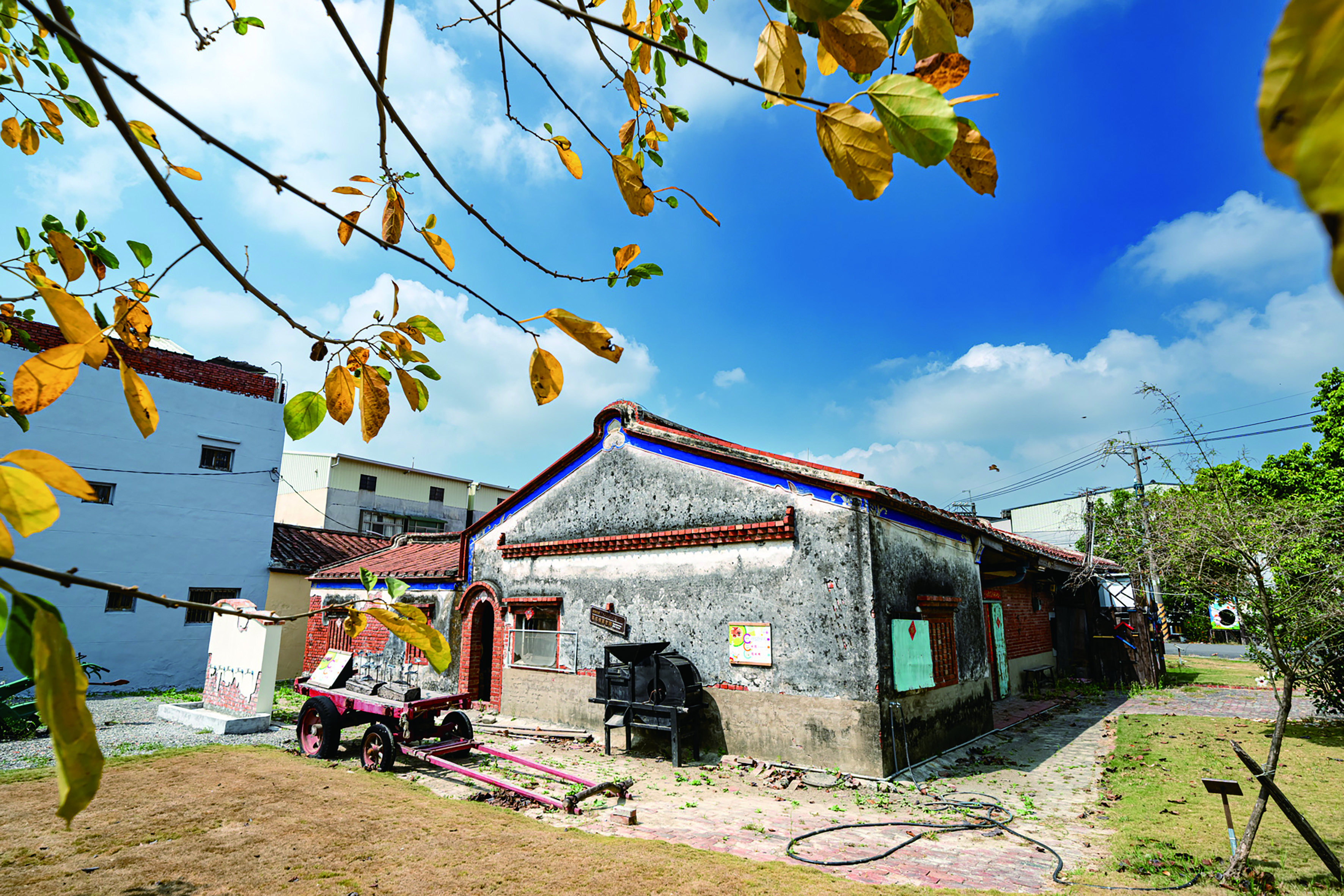 另一處擁有九十多年歷史的陳家土埆厝,修復後成為「璞園古厝文物館」,館內展示牛車、竹搖籃、犁具等舊時農耕與生活器物,在耆老的導覽解說下,逐一說出昔日養鴨人家的生活樣貌與時代記憶。