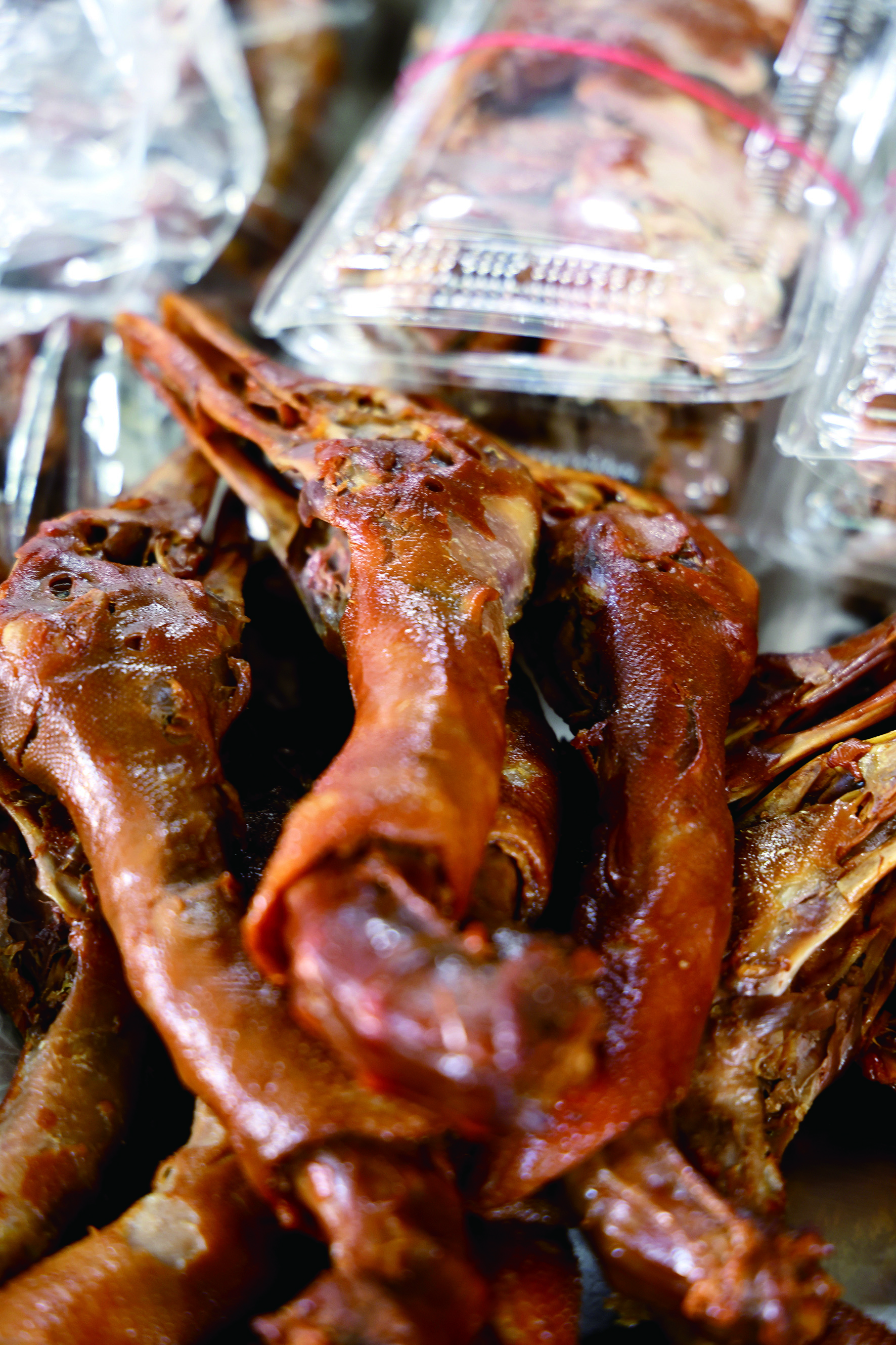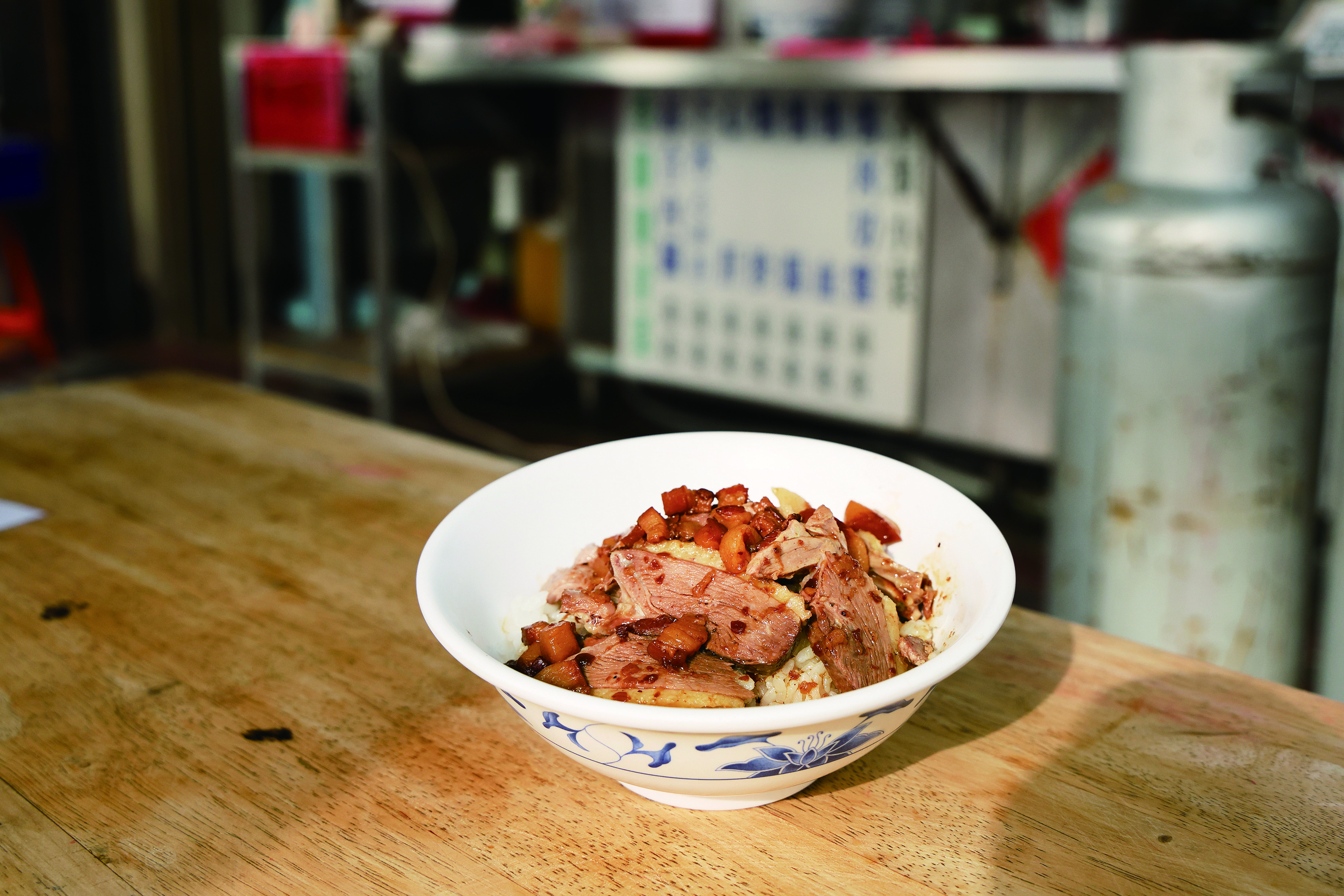 高雄的小吃版圖裡,鴨肉始終占有一席之地。鹽埕區的老字號鴨肉飯,糖燻入味的鴨肉切片鋪在熱騰騰的肉臊飯上,香氣蒸騰,讓人一口接一口停不下來;楠梓黃昏市場裡的煙燻滷味攤,甜甜的煙燻香氣滲入鴨翅、鴨舌之中,令人吮指回味。