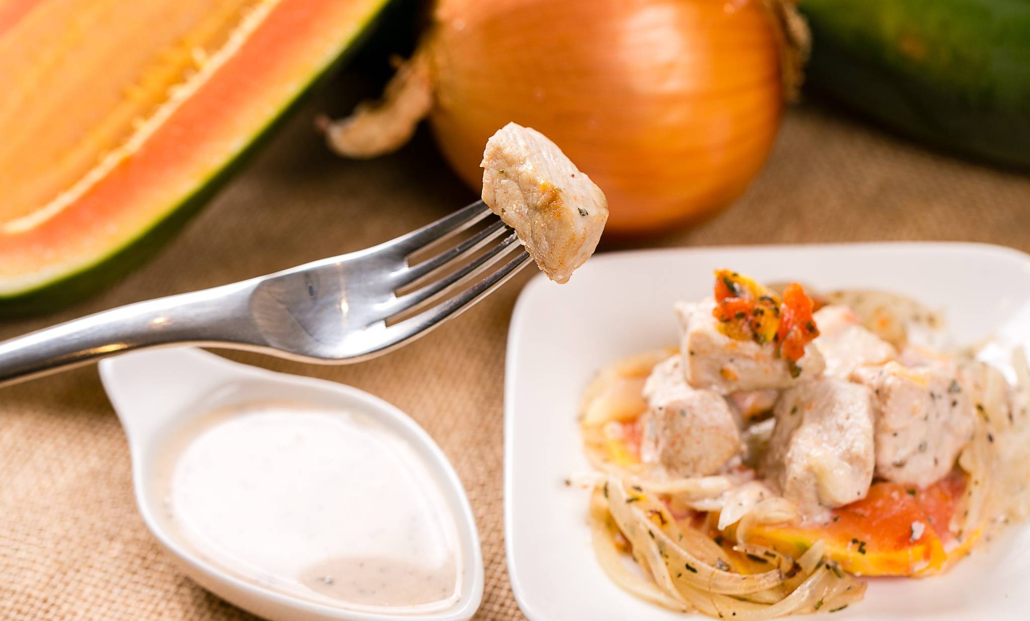 木瓜 1顆、豬大里肌 300-400公克、洋蔥 0.5顆、羅勒葉 少許