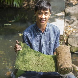 經過一段時間的適應與心態的調整,育諠決定成立自己的品牌,以不同的方式來經營自己的事業,以品質為首要考量,著重田間管理及安全用藥,雖然需要更多的人力來去除雜草,但卻可以提升草皮產品的外觀品質,避免影響生長。育諠栽植的草皮以密度高、存活率高、外觀亮麗、完整性高為主要優勢,提供南台灣新鮮的草皮產品,因為品質受到肯定,也承接許多綠化工程、整體景觀設計的案件。這幾年,育諠在工作中慢慢獲得成就感,品牌經營也越趨穩定,漸漸得到家人的理解與肯定。